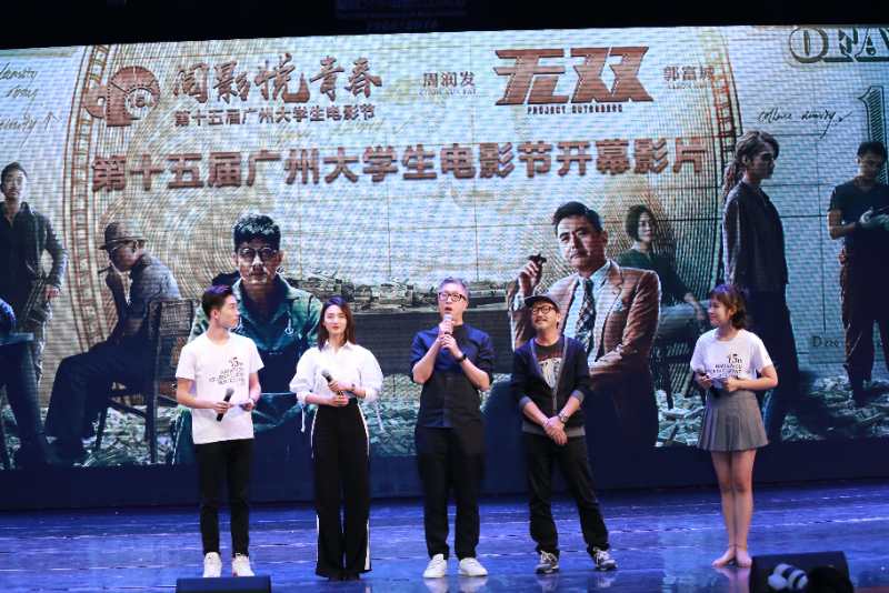 开幕式现场,由庄文强执导,黄斌监制,著名演员周润发、郭富城等主演的国庆档电影《无双》,作为大影节的开幕影片抢先献映。随后庄文强导演携演员廖启智和冯文娟亲临现场,与各高校学子们互动交流,分享电影行业的创作和演艺心得。
