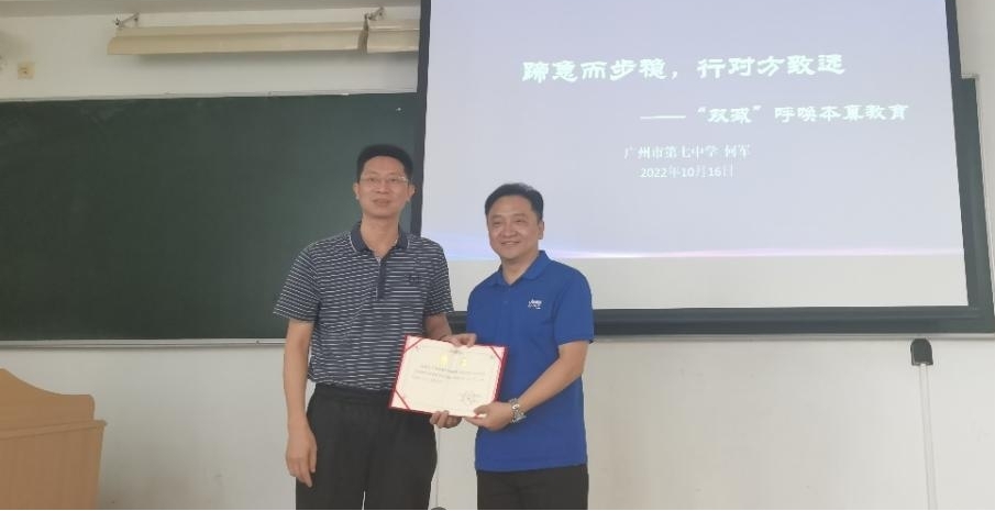 历史系举办了一场主题为《蹄急而步稳,行对方致远——“双减”呼唤本真教育》的学术讲座,我们有幸邀请到广州市第七中学现任校长何军老师担任主讲嘉宾。何军老师毕业于江西师范大学,躬耕杏坛三十载,从普通教师一步步进阶为校长、教育研究院院长,对教育有着深刻的见解。